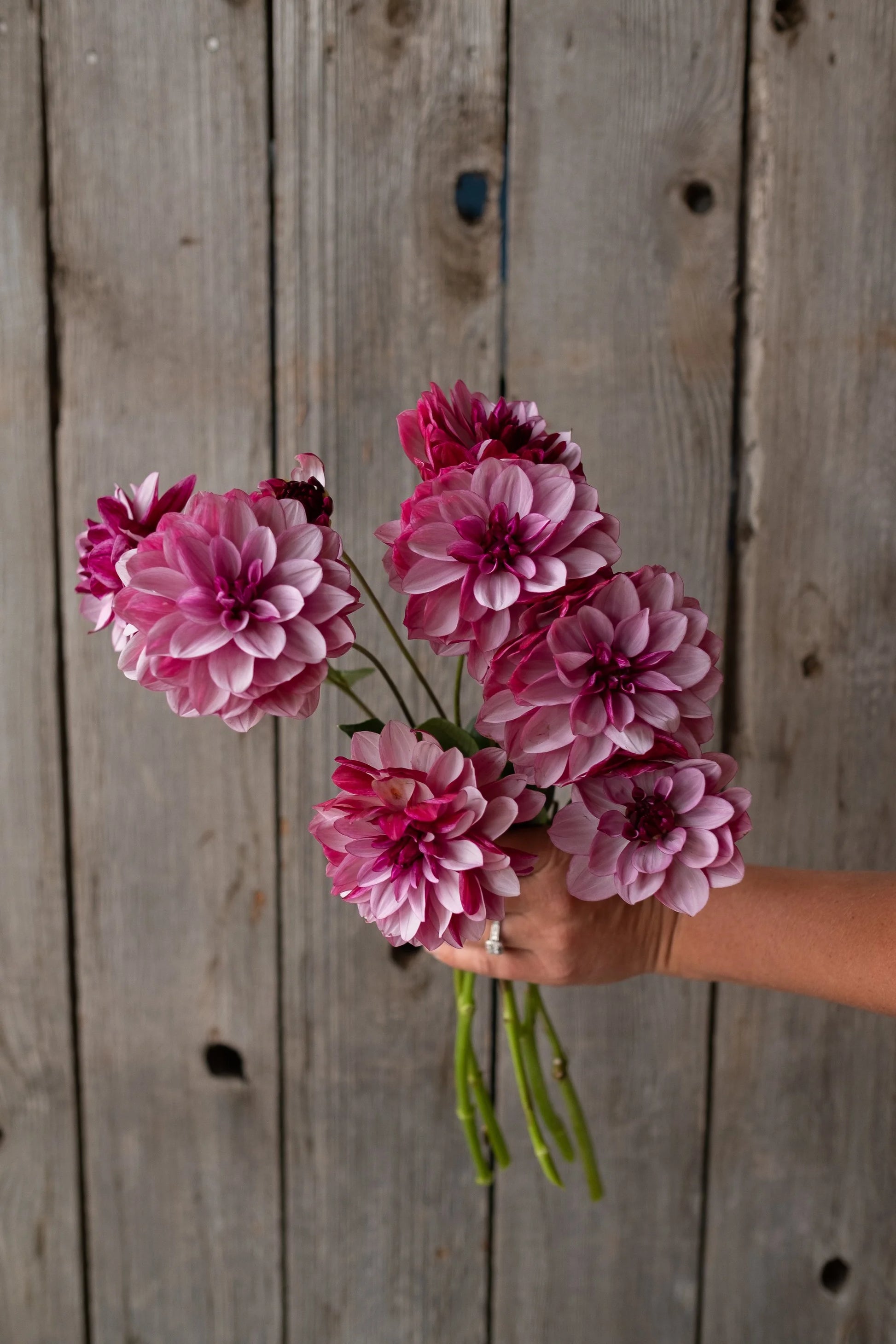 Its name says it all – Crème de Cassis is a fancy dahlia. Deep wine-purple buds open into soft and subtle lilacs on the inside of each petal. She is a work of art mesmerizing the onlookers. Mixes well with other color palettes. Nice strong stems, perfect upright water lily blooms.